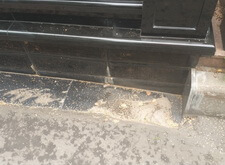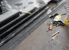 В ходе работ возникло небольшое недопонимание между нами и администрацией кладбища. Нас попросили убрать выступающую на проезжую часть площадь прилежащей территории. Конфликт был урегулирован, мы немного подрезали гранит и положили в образовавшуюся нишу холодный асфальт.