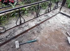 Когда брусчатка подсохла, мы принялись к финальным этапам работы: покрасили ограждение, а также восстановили потускневшую и практически нечитаемую надпись на надгробье. Так выглядела могила на момент окончания работы.